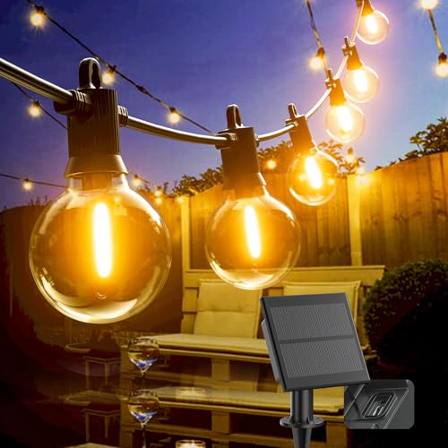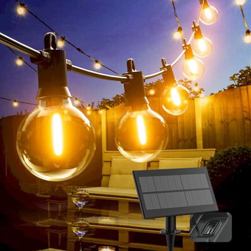 Solar Festoon Lights Outdoor,Shatterproof G40 LED Outdoor String Lights Waterproof with 25+2 Bulbs,30Ft/9.2M with 4 Modes Light for Outside Wedding Backyard Patio Garden Party Decoration (Warm White)