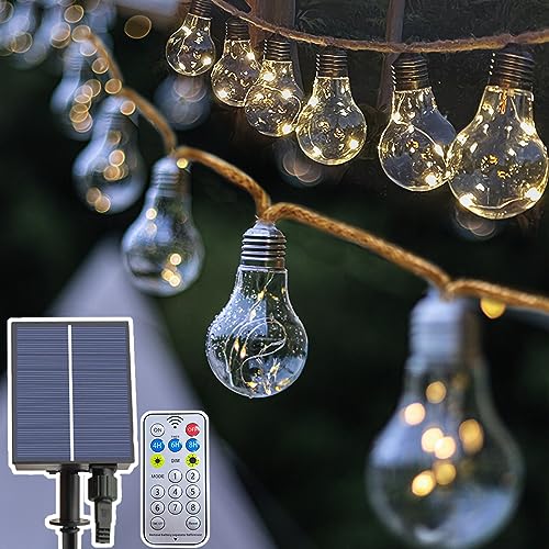 Ciskotu 32.8Ft/10M Solar Lights Outdoor Garden, 160 LEDs Garden Lights Solar Powered Hemp Rope Waterproof with Remote, 15 pcs G40 Bulbs 8 Modes Solar String Lights for Yard Camping Party Decor