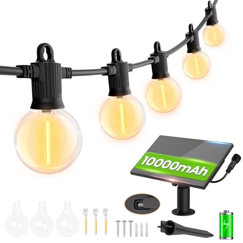 Solar Garden Lights Outdoor, 9.5M/31FT Solar Festoon Lights with 15+1 G40 Globe Shatterproof LED Bulbs, Waterproof IP65 String Lights for Outside, Patio, Yard, Gazebo, Wedding, Party(Warm White)