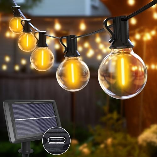 btfarm Solar Festoon Lights Outdoor, 10M/33FT Garden String Lights Outdoor USB & Solar Powered, 12+1 G40 Shatterproof Bulbs, 8 Modes Dimmable Waterproof Lighting for Gazebo Patio Wedding Decor