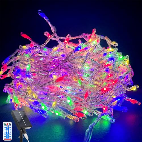 Tacobey Solar Christmas String Lights Outdoor Garden - 65Ft/20m 200 LED Solar Fairy Lights Waterproof with Remote, 8 Modes, Decorative Lighting for Garden Outdoor - Multicolor