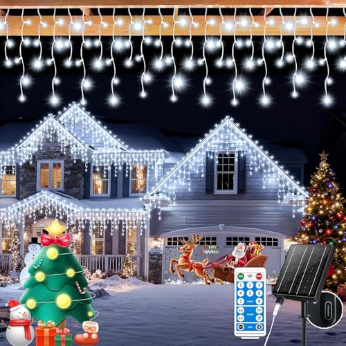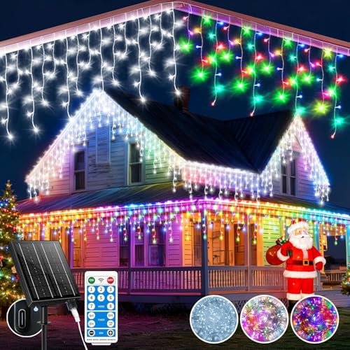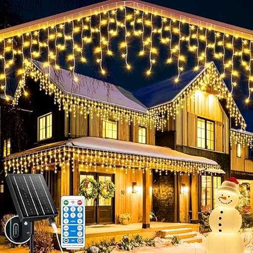GCMacau 3 in 1 Solar Christmas Icicle Lights Outdoor 20+5m 82ft 660 Led Solar Icicle Fairy Lights 8 Lighting Modes with Dimmable String Lights Outdoor for Yard, Patio, and Wedding Decor