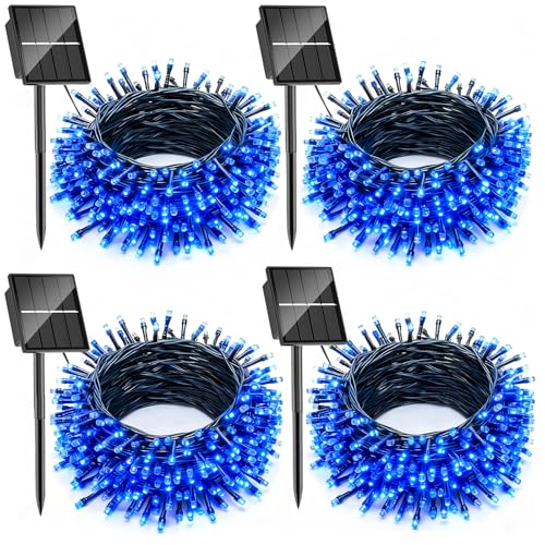 SOLARBABY Solar String Lights Outdoor, 4x10M 100LED Solar Christmas Fairy Lights, 8 Modes Waterproof Outdoor Christmas Lights for Garden Patio Party Wedding, Blue
