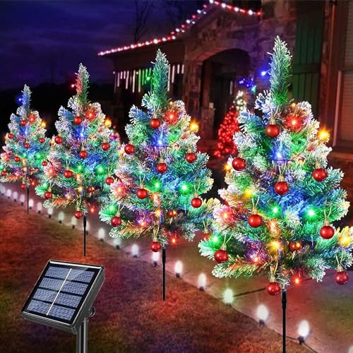 Upgraded 4-Packs Solar Christmas Pathway Lights for Outdoor Christmas Decorations, 8 Modes Waterproof Solar Garden Stake Lights for Decorations Yard, Lawn, Pathway, Grave