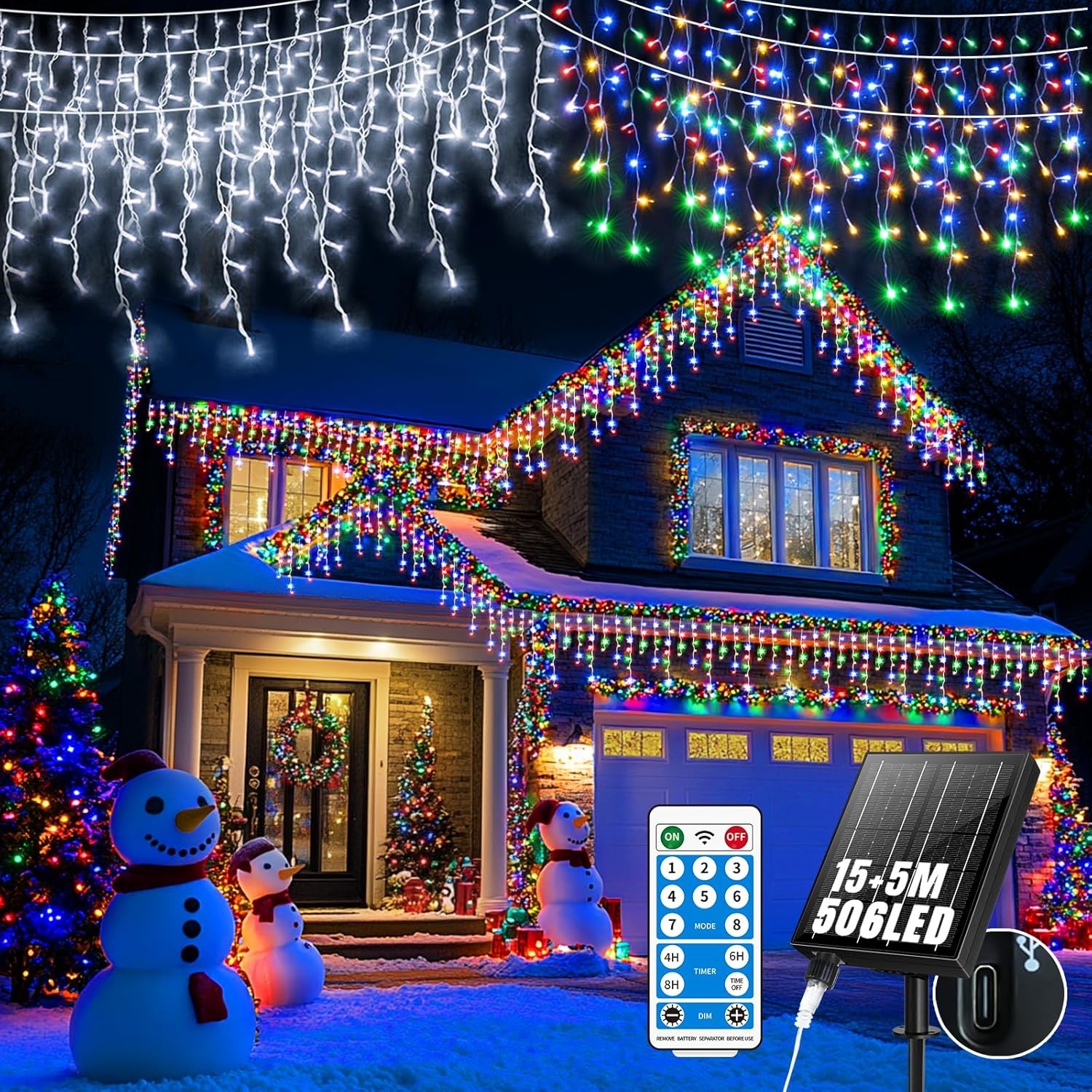 GCMacau Solar Christmas Icicle Lights Outdoor 15+5m 65.6ft 506 Led Solar Icicle