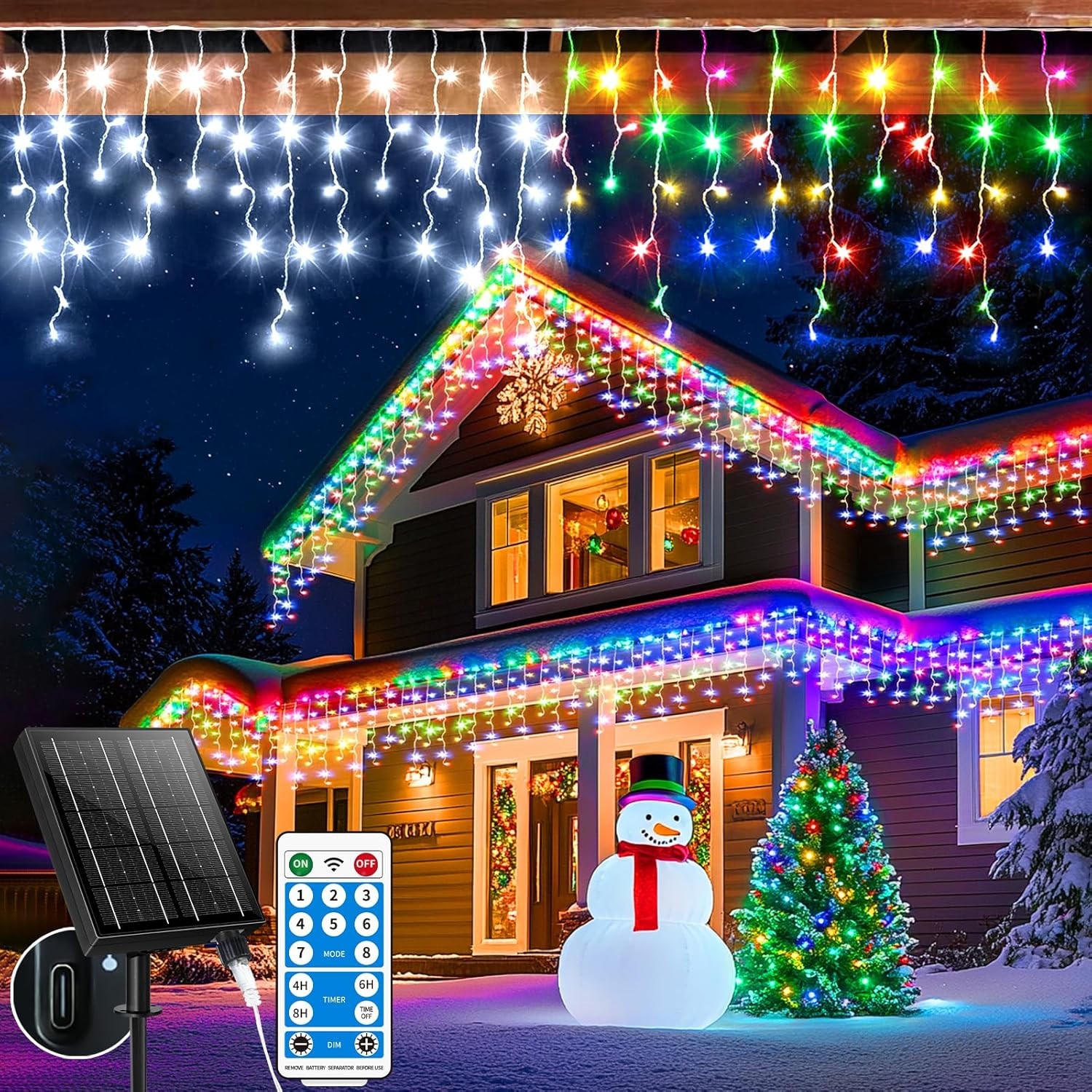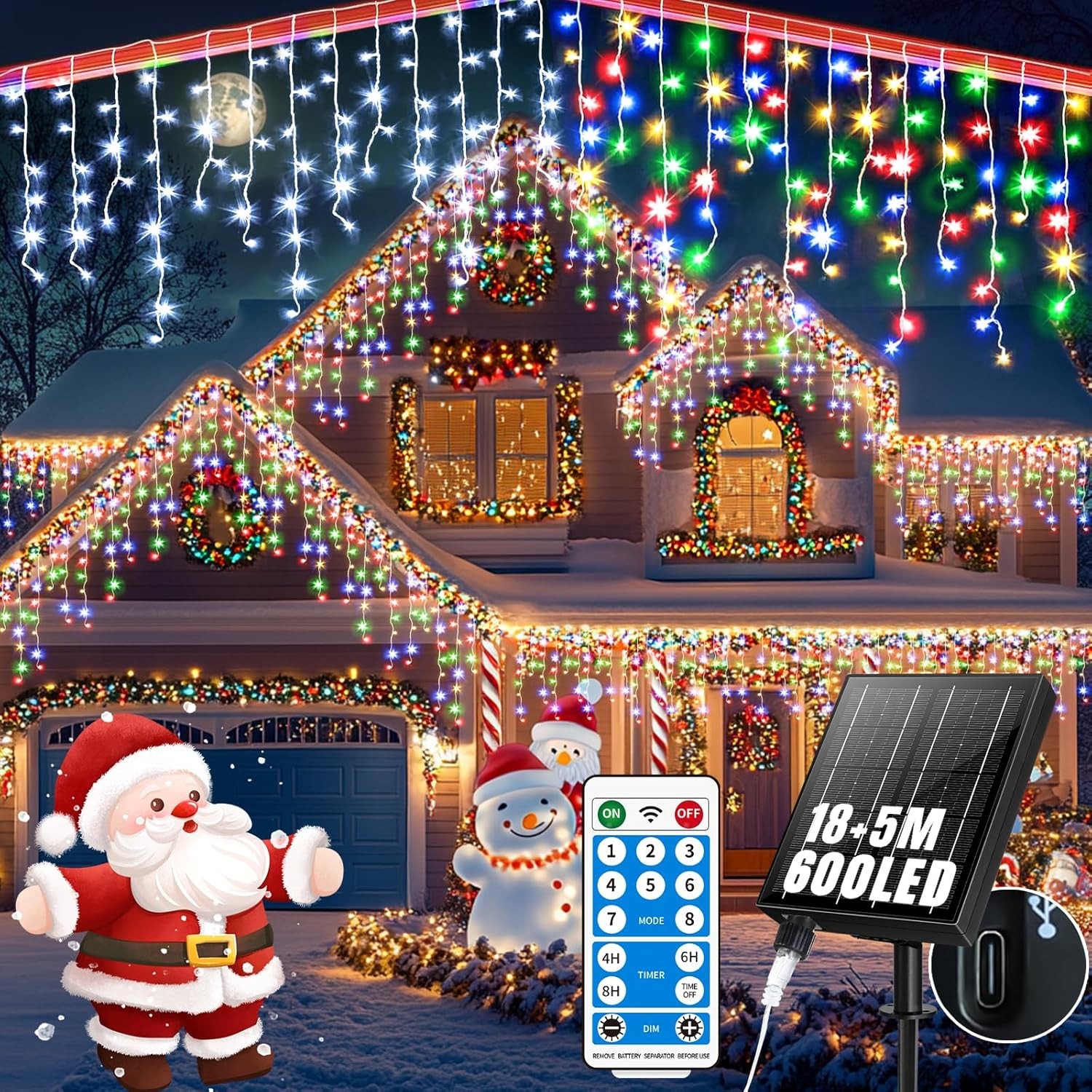 Outdoor Solar Christmas Icicle Lights 18+5m/75.5ft 600 Led Icicle String Lights