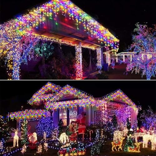 Homeleo Solar Icicle Christmas Lights, String Light for Outdoor Christmas Decorations Front Porch Back Yard Holiday Display Garden Patio House Bedroom Window Decor(4M/30 Drops/160 LED)