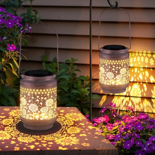 BUCASA 2 Pack Birthday Gifts for Women, Garden Ornaments Outdoor Sunflower Solar Lanterns for Outside, Waterproof Hanging Garden Solar Lights Christmas Presents Mothers Day Gifts for Mum Grandma