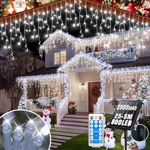 RJEDL Solar Outdoor Christmas Icicle Lights Mains Powered, 25M+5M/98.5ft 800 LED Waterproof Icicle Fairy Lights with 8 Modes Remote Control and Dimmable, Plug in String Lights for Outdoor Decor