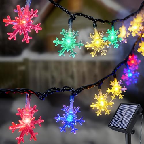 Solar Christmas Lights 12M 100 LED Snowflake String Lights Outdoor Garden Fairy Light Solar Powered Waterproof Outdoor Christmas Decorations 8 Modes Decorative Light for Garden Yard Fence Party Winter