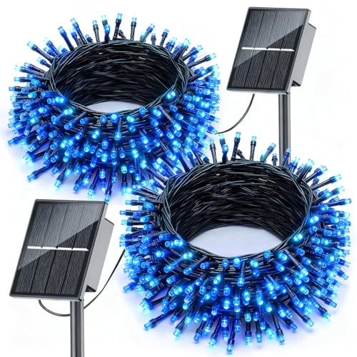 SOLARBABY Solar String Lights Outdoor, 2x10M 100LED Solar Christmas Fairy Lights, 8 Modes Waterproof Outdoor Christmas Lights for Garden Patio Party Wedding, Blue