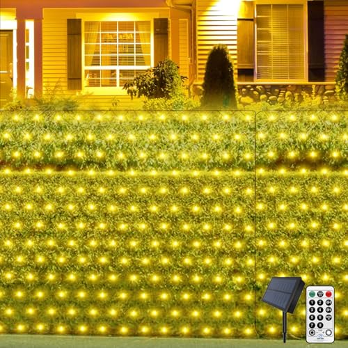 THKFUL 320 LED Christmas Solar Net Lights Outdoor,6 x 2M Solar Mesh Fairy Lights with Remote Timer 8 Modes Waterproof for Xmas Balocny Curtain Window(Warm White)