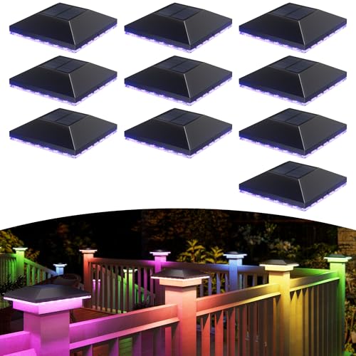 JACKYLED Solar Post Lights RGB—IP54 Waterproof LED Deck SolarFence Lights, Fits 4x4 to 5x5 Posts (7.3–10.5cm), Auto On/Off, 800mAh, Dusk to Dawn Multi-Colour Lighting for Yard, Patio, Garden (10pack)