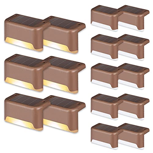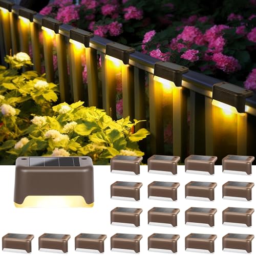 GIGALUMI Solar Fence Lights Outdoor Garden, 16 Pack Solar Step Lights, Waterproof Solar Deck Lights for Stairs, Yard, Patio, Gutter, Garden, Pathway Decoration (Brown, Warm White)