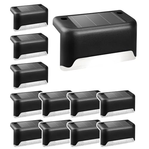 Solpex Solar Deck Lights, 12 Pack Solar Step Lights for Outdoor, Waterproof for Outdoor Stairs, Steps, Fence, Yard, Patio, Gutter, Pathway, Decoration(Black, Cold White)