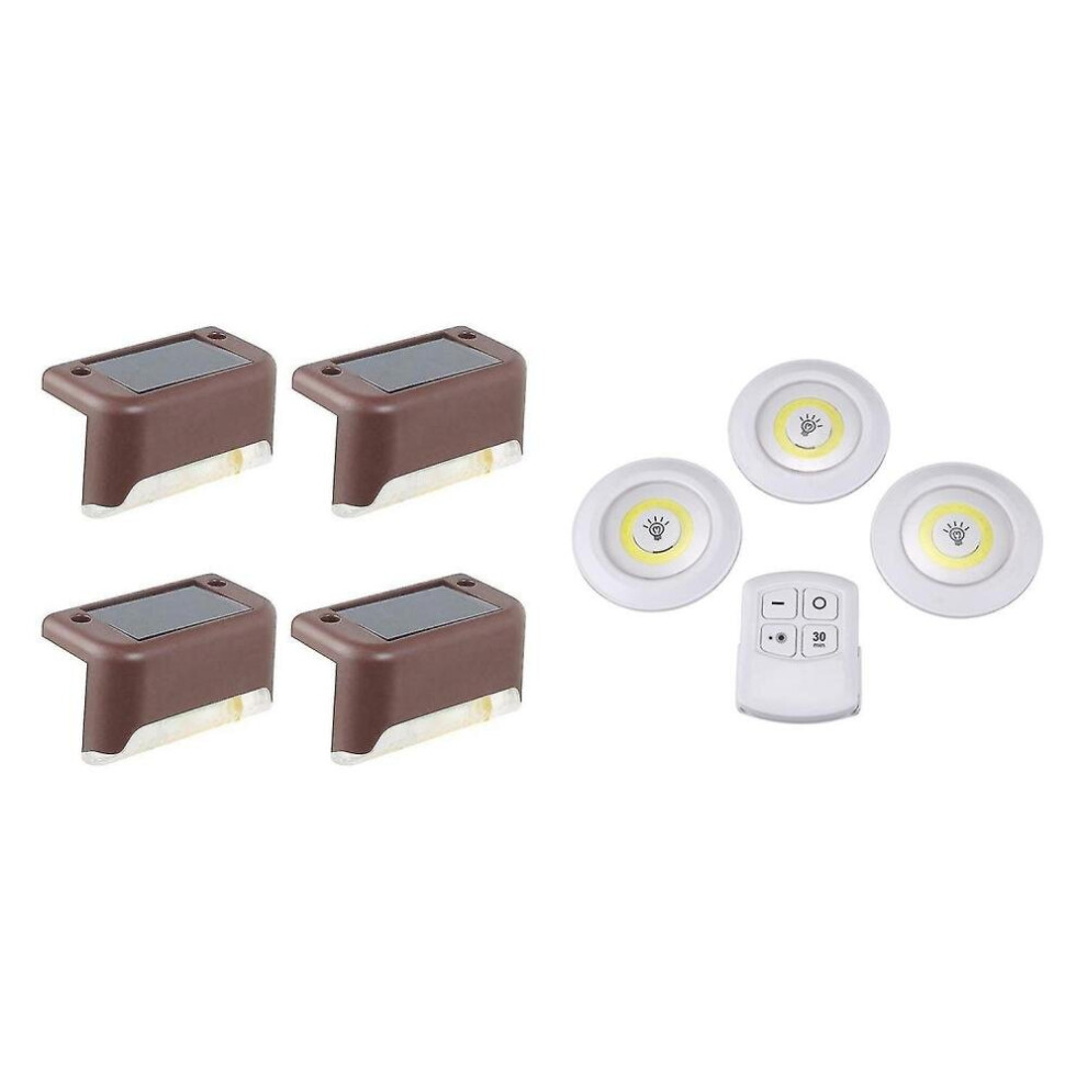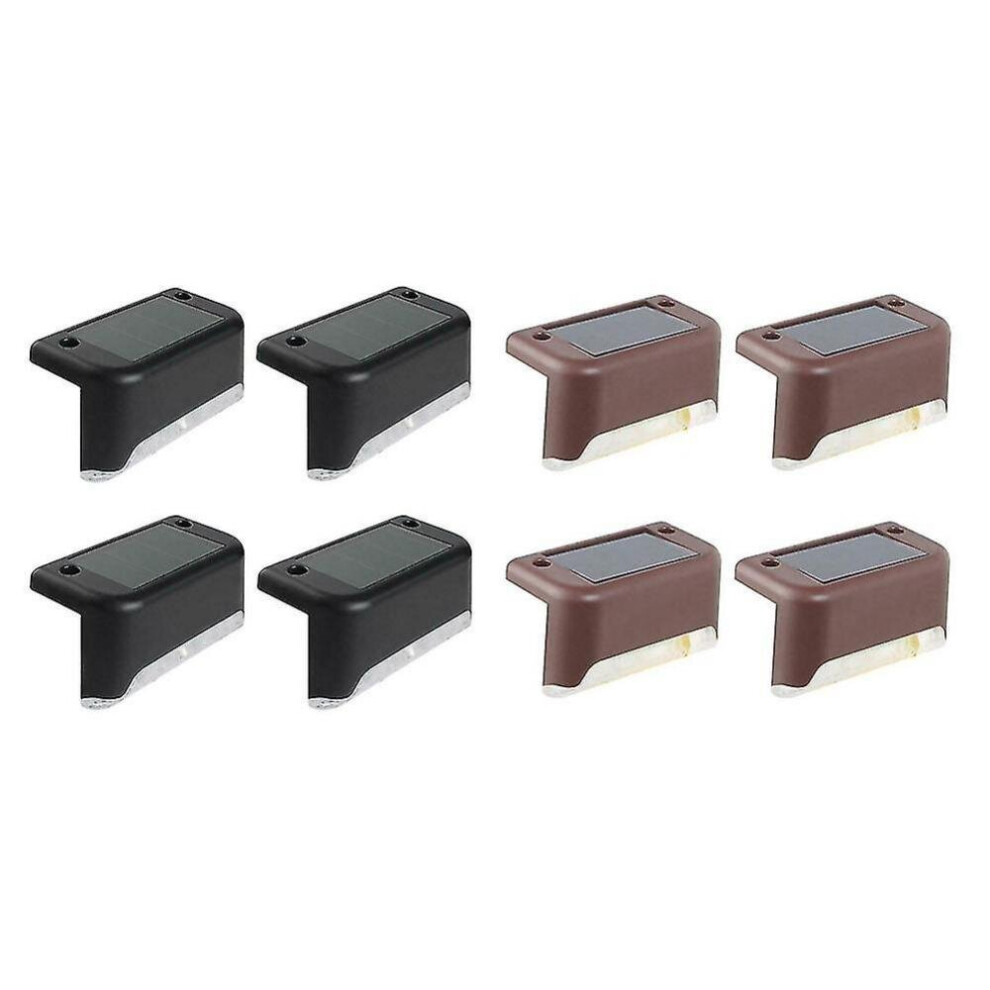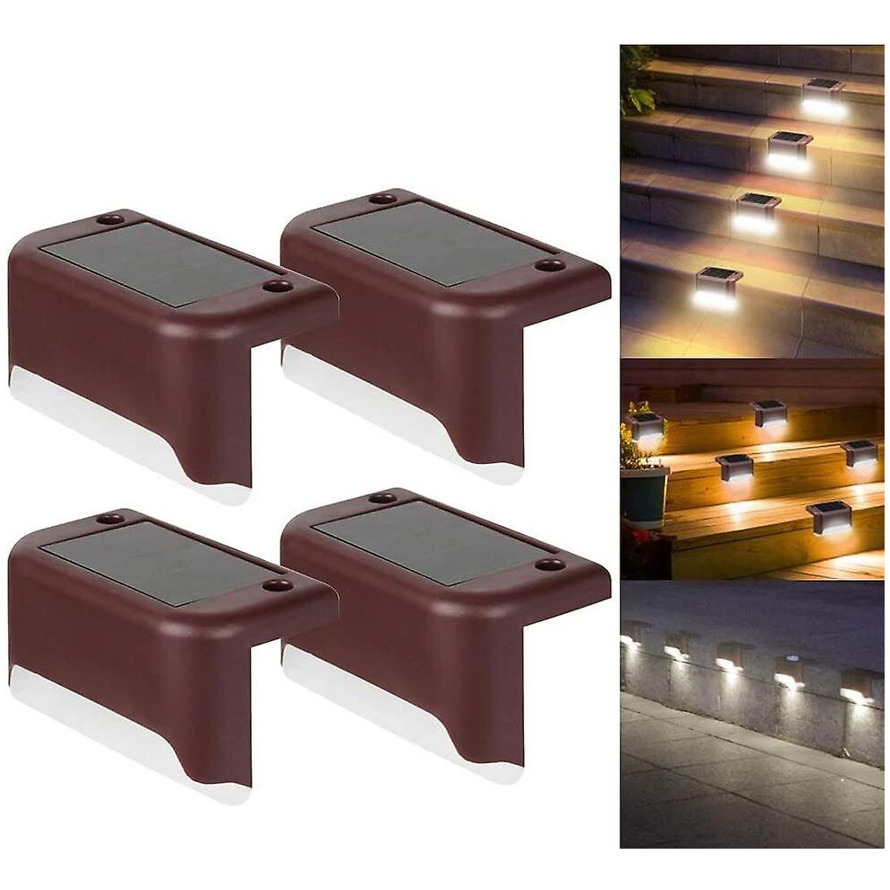 (Brown, Cold Light) 4 Pack Solar Deck Lights Led Solar Step Lights Waterproof Fence Lights For Outdoor Steps Fence
