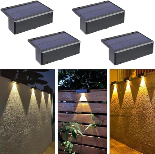 SMY Lighting Solar Deck, Fence, Wall Lights - 4 Pack Warm White Waterproof LED Illuminate for Yard, Railing, Stair, Patio Decor