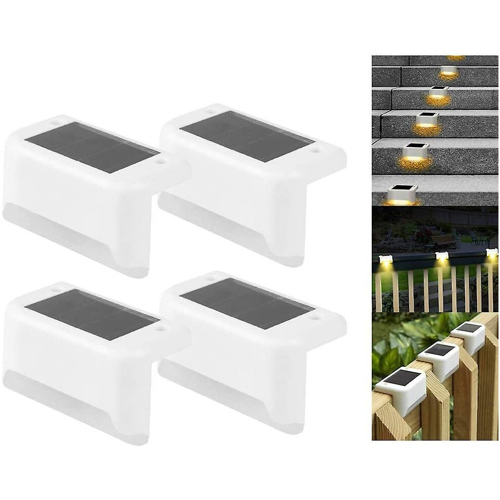 (White, Warm Light) 4 Pack Solar Deck Lights Led Solar Step Lights Waterproof Fence Lights For Outdoor Steps Fence