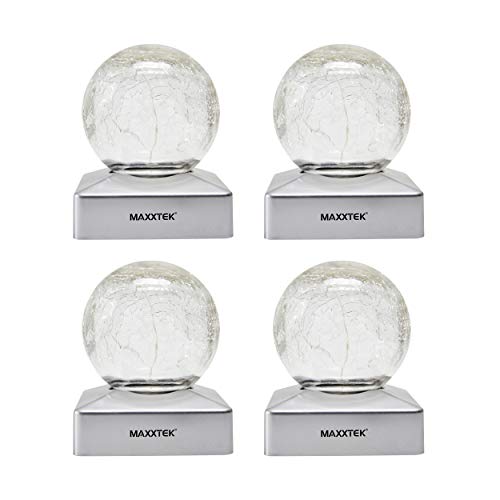Maxxtek® Solar LED Crackle Ball Garden Post Deck Cap Lights Outdoor Fence Lights - Warm White 4 Pack
