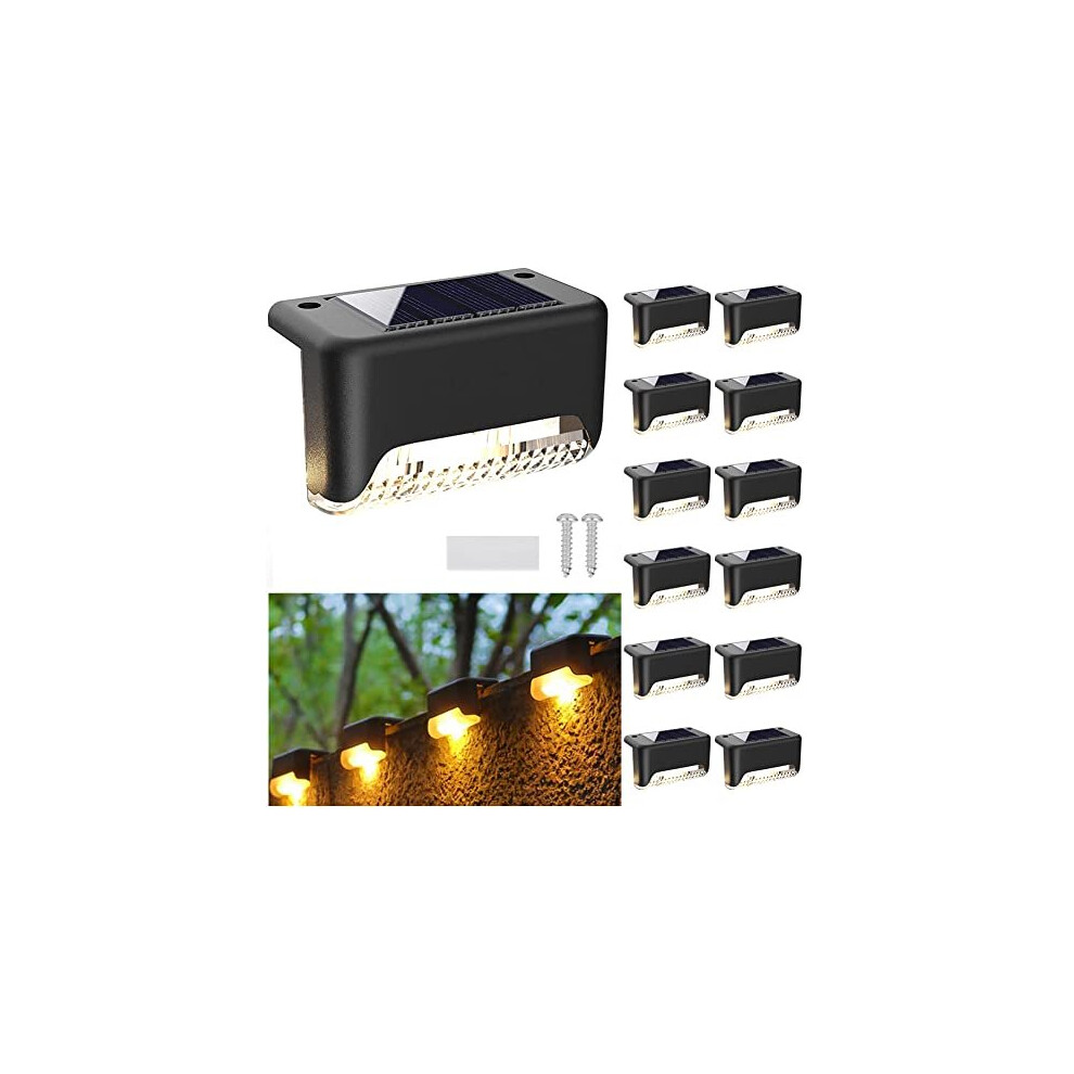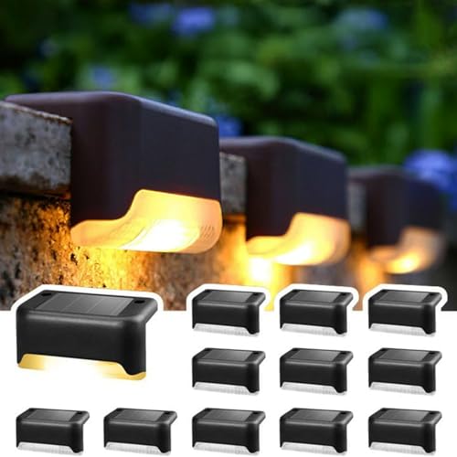 CNMTCCO Solar Deck Lights,12-Pack,Waterproof Outdoor Step & Fence Lights, Warm White Solar Pathway Lighting for Yard, Patio, Stairs, and Garden(Black)
