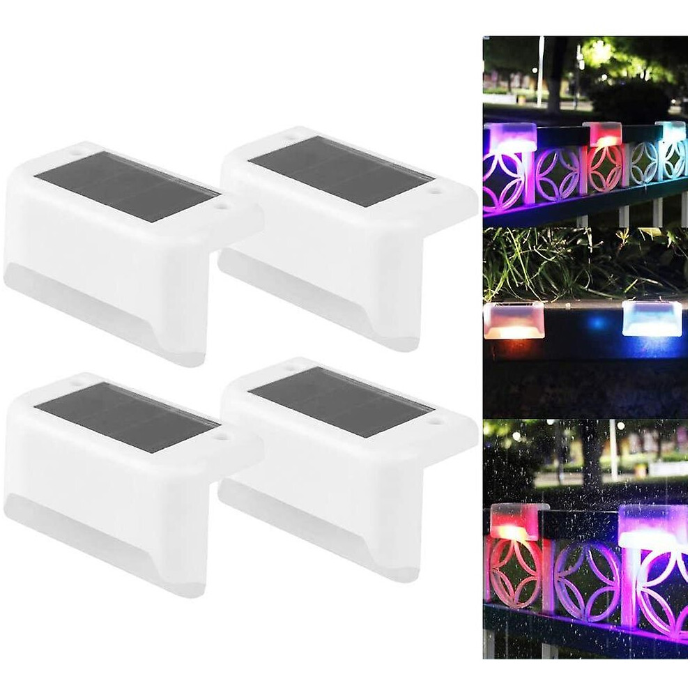 (White, Colorful) 4 Pack Solar Deck Lights Led Solar Step Lights Waterproof Fence Lights For Outdoor Steps Fence