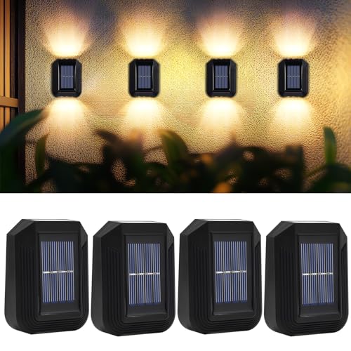 Wowlela 4 Pack Solar Wall Lights Outdoor, Up and Down Waterproof Fence Garden Solar Lamps, Waterproof Deck Lights for Backyard,Wall Fence,Deck,Gutter,Porch,Step