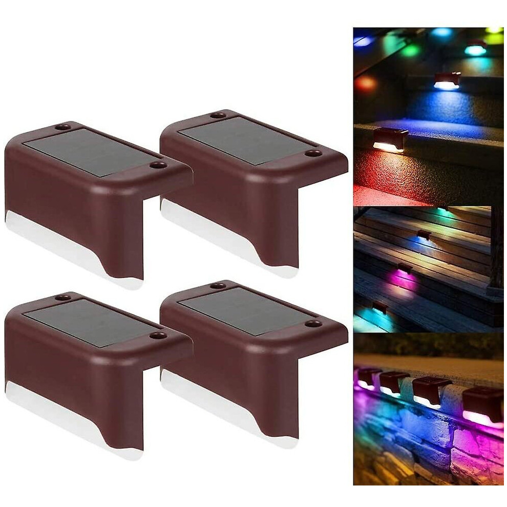 (Brown, Colorful) 4 Pack Solar Deck Lights Led Solar Step Lights Waterproof Fence Lights For Outdoor Steps Fence