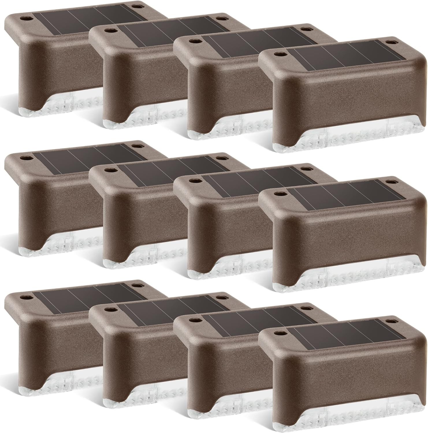 Solpex Solar Fence Lights, 12 Pack Garden Solar Deck Lights for Outdoor, Waterproof for Outdoor Stairs, Step, Fence, Yard, Patio, Pathway(Brown Warm White)
