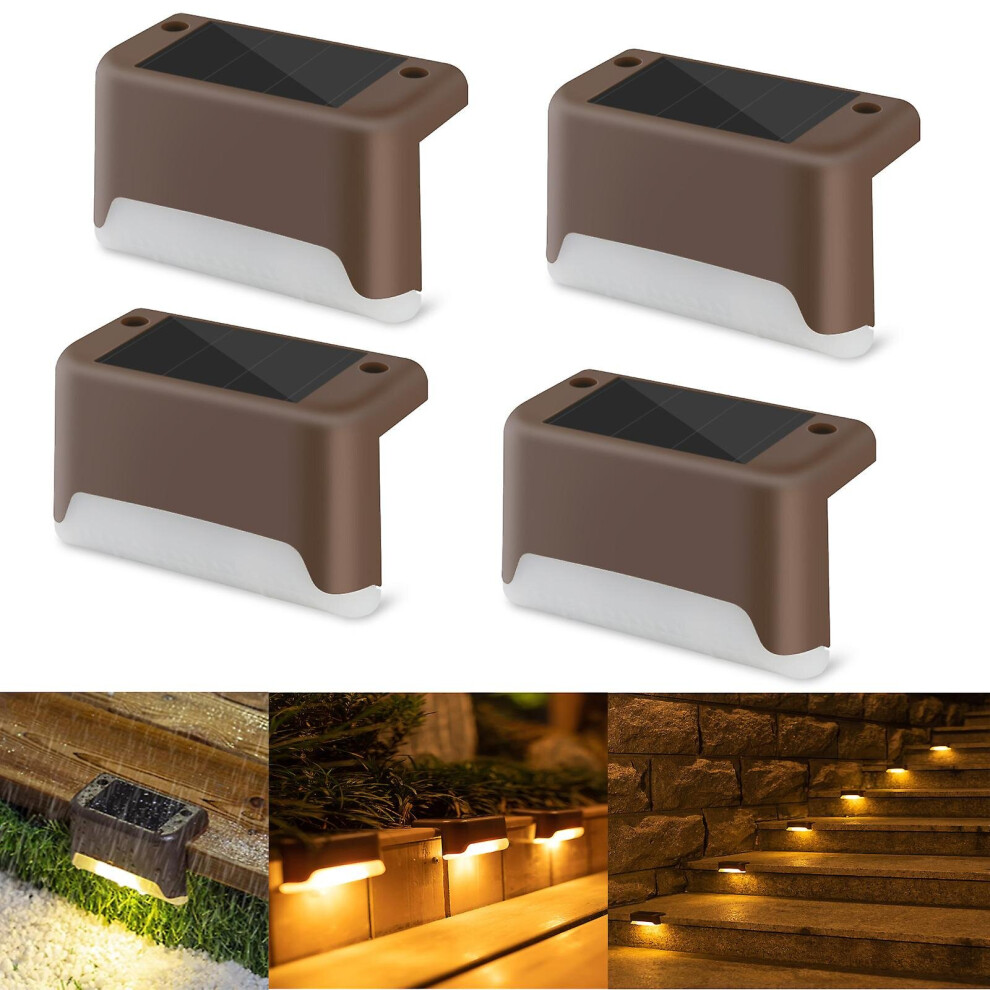 (Brown, Warm Light) 4 Pack Solar Deck Lights Led Solar Step Lights Waterproof Fence Lights For Outdoor Steps Fence