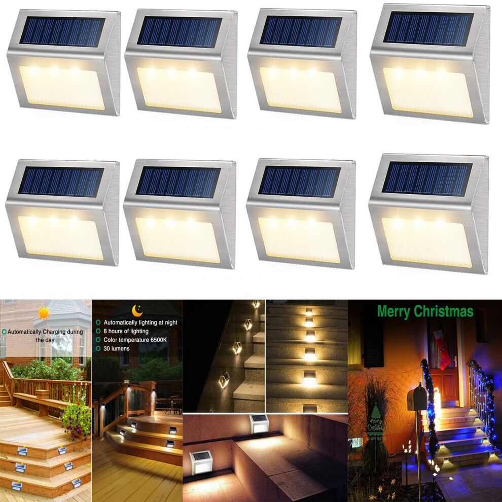 (6Pcs) Outdoor Stainless Steel LED Solar Path Stair Light Waterproof 3 LED Solar Deck Lights Balcony Garden Yard Fence Solar Light
