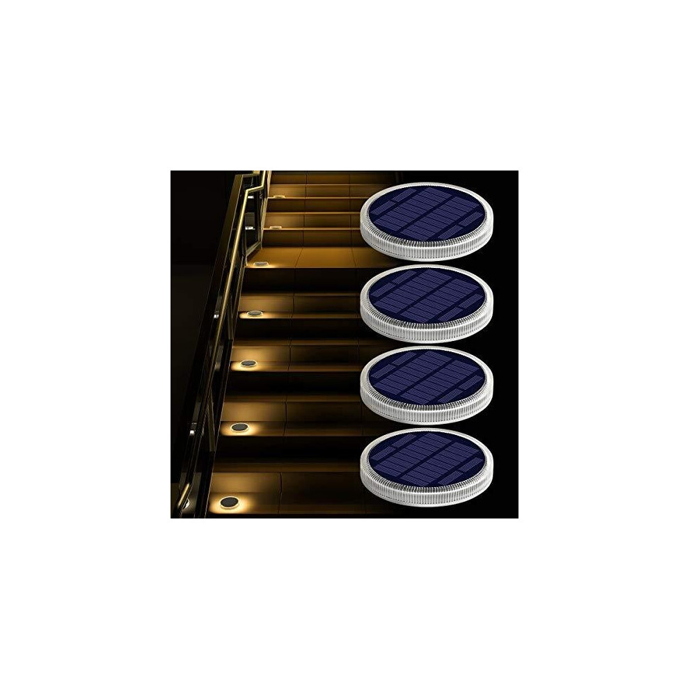 Solar Deck Lights, Driveway Walkway Dock Light Solar Powered Outdoor Stair Step Pathway LED Lamp for Backyard Patio Garden Ground, auto On/Off - Warm