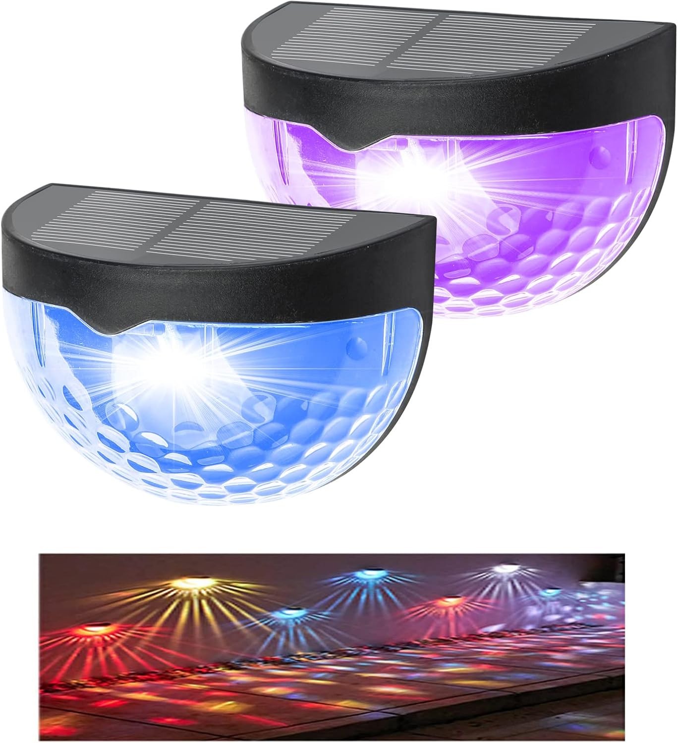 Siedinlar Solar Deck Lights Outdoor Powered Warm White/Rgb Changing