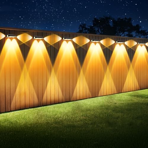 HAMLITE Solar Fence Lights Outdoor Garden: Solar Wall Lights Outdoor Waterproof - Solar Powered Garden Fence Lights 3 Color Modes for Deck Patio Decking Gate Yard Decoration 10-Pack