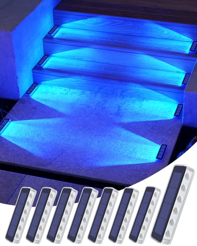 DetarZinLED Solar Lights Outdoor Garden, 8-Pack Blue Solar Lights Outdoor, Waterproof Decking Light, 1000mAh Battery & 8-10H Auto Lighting Step Light Solar Powered for Dock Steps Patio Path Driveway