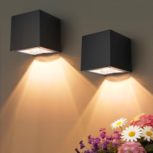 YUNYODA Solar Wall Lights, 2 Pack Outdoor Solar Fence Lights with 2 Lighting Modes, IP65 Waterproof Outdoor Garden Fence Lighting for Wall,Porch,Patio,Decking,Yard Decoration, Warm White & Cool White