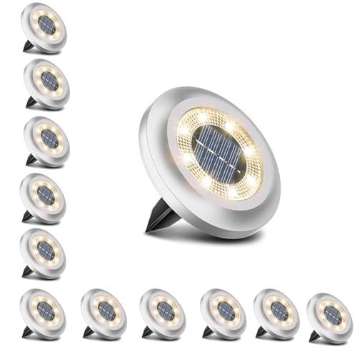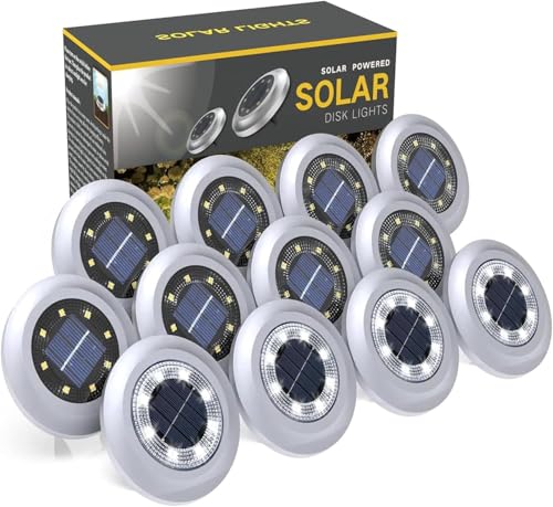 Torchtree 2023 Upgraded Solar Outdoor Garden Lights, Ground Disk Decking Solar Powered for Lawn Pathway Yard Landscape Walkway (12 Pack Bright White)
