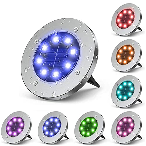DJXIK Solar Ground Lights Outdoor 8 Pack 7 LED Colored Solar Disk Garden Lights Waterproof Inground Landscape Lighting for Yard Deck Lawn Patio Pathway Walkway Driveway with Multiple Changing Colors