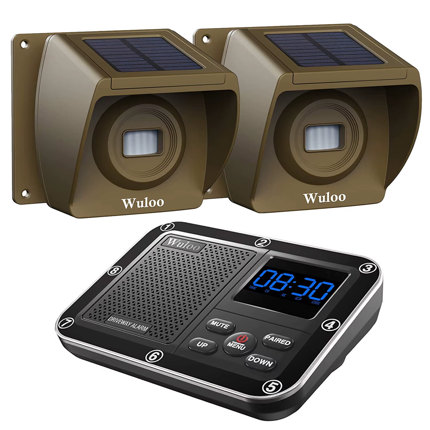 Wuloo 1800Ft Range Solar Powered Driveway Alarm Wireless Motion Infrared Sensor