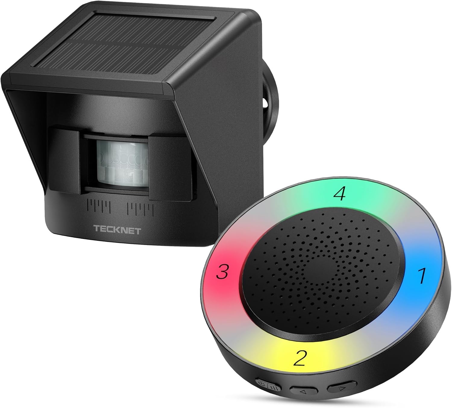 TECKNET Solar Wireless Driveway Alarm with 2600FT Long Range & 36 Melodies & 5 Volumes and Supports 4 Zones Weatherproof Motion Sensor Alarm to Protect Inside/Outside Property (1 Receiver & 1 Sensor)