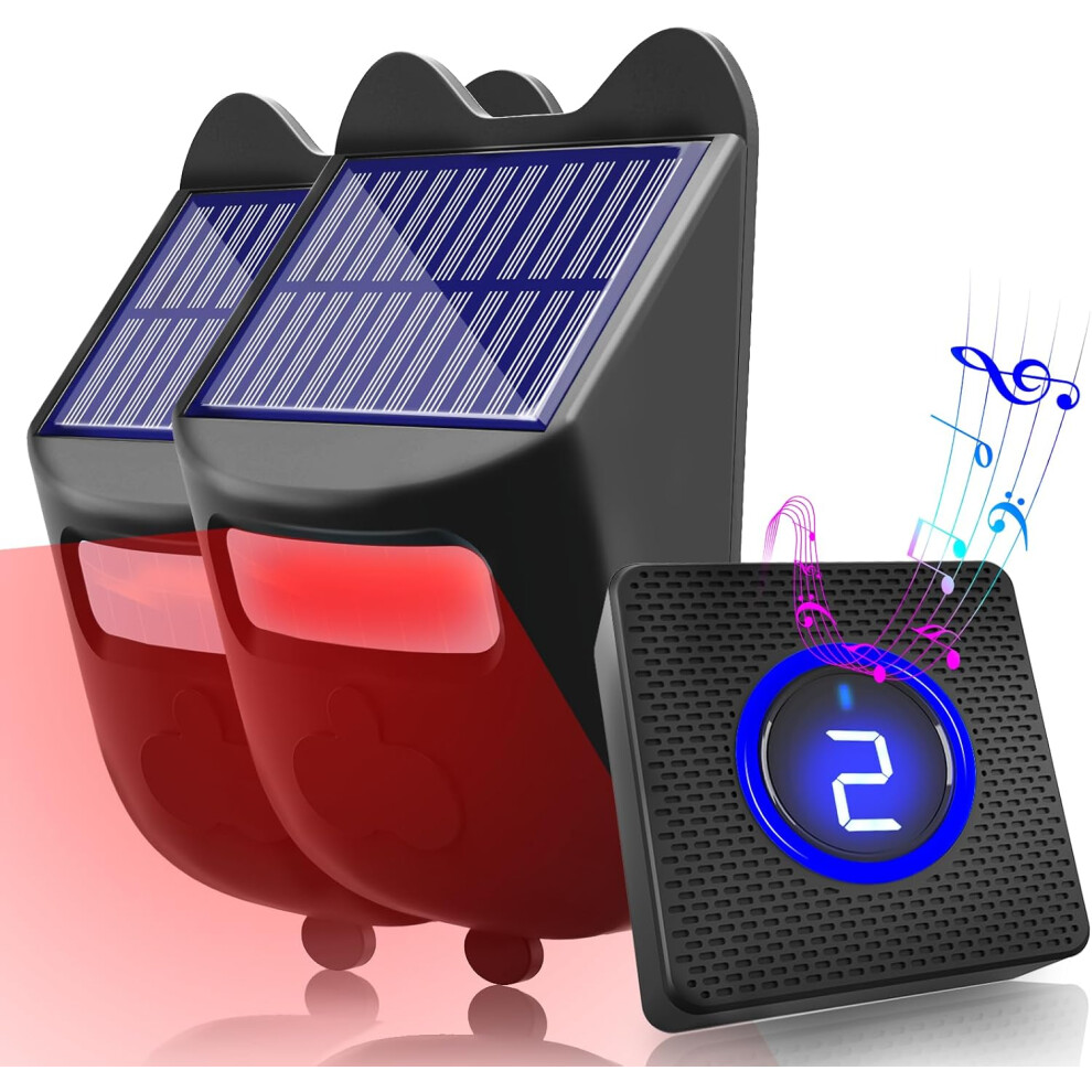 Solar Driveway Alarm 984ft Long Range Wireless Security System with 2 Sensors & 1 Receiver