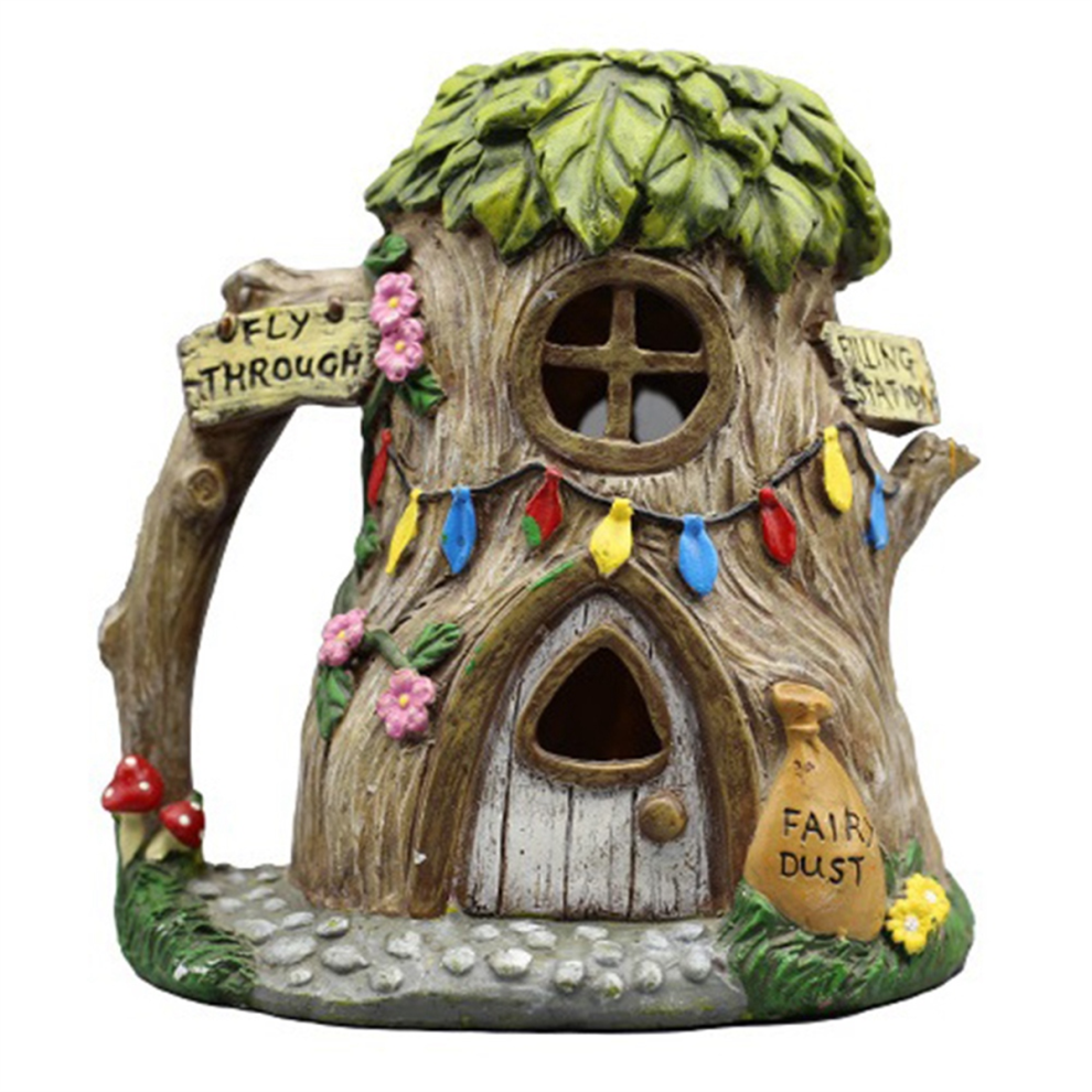 Resin Houses with Solar LED Lights Fairy Garden Accessories B