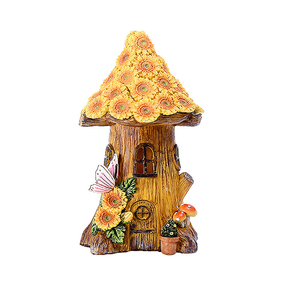 Weatherproof Resin Figurines Solar Powered Fairy House Miniature Garden Ornaments Outdoor Solar Statues Garden Decor Accessories Resin Sunflower