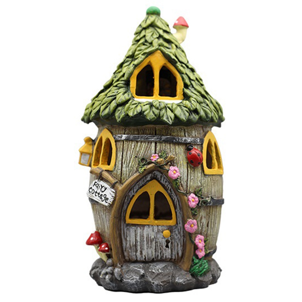 Resin Houses with Solar LED Lights Fairy Garden Accessories Outdoor Cottage Figurines Lawn Ornaments,B