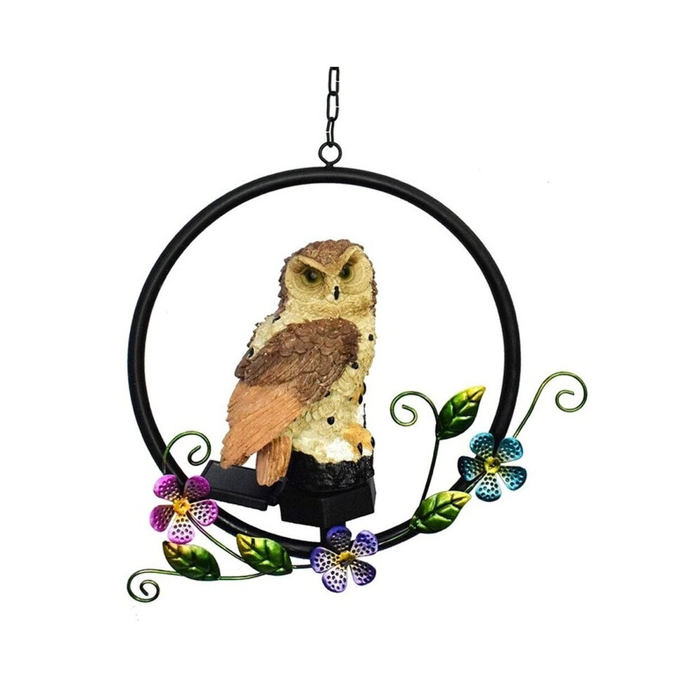(Brown) Solar LED Owl Hanging Waterproof Outdoor Garden Resin Pendant Light Waterproof Yards Patios Decoration Lighting