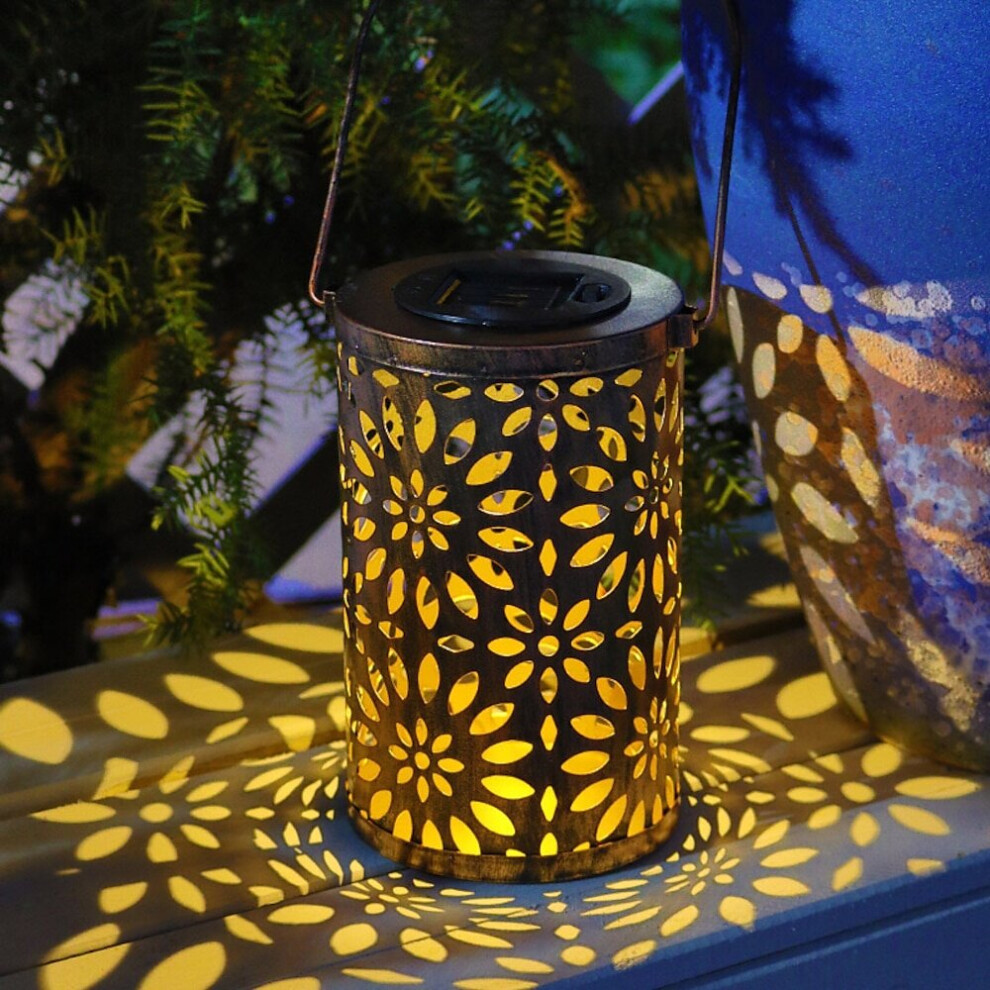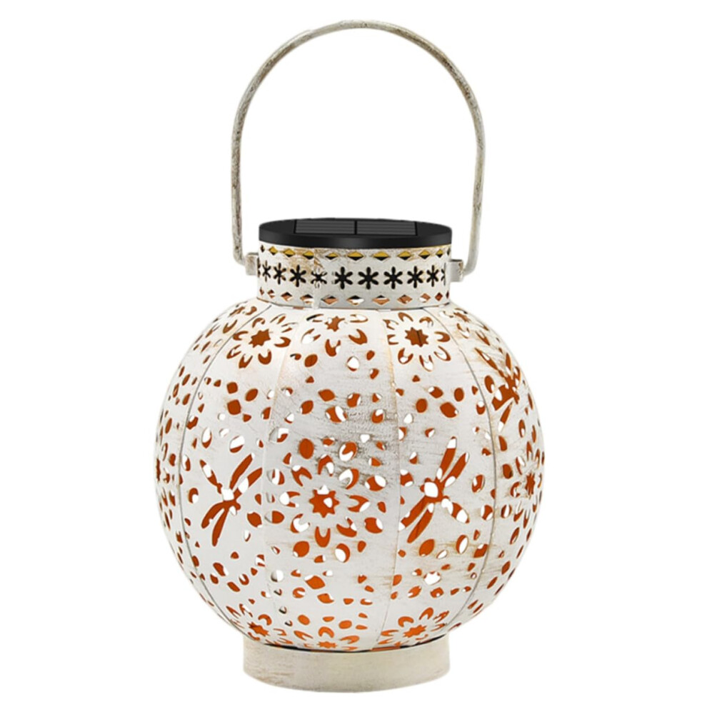 Solar Lantern Hanging Light - Wrought Iron Hollow Design, White Garden Pendant Lamp, Solar-Powered Yard Decoration