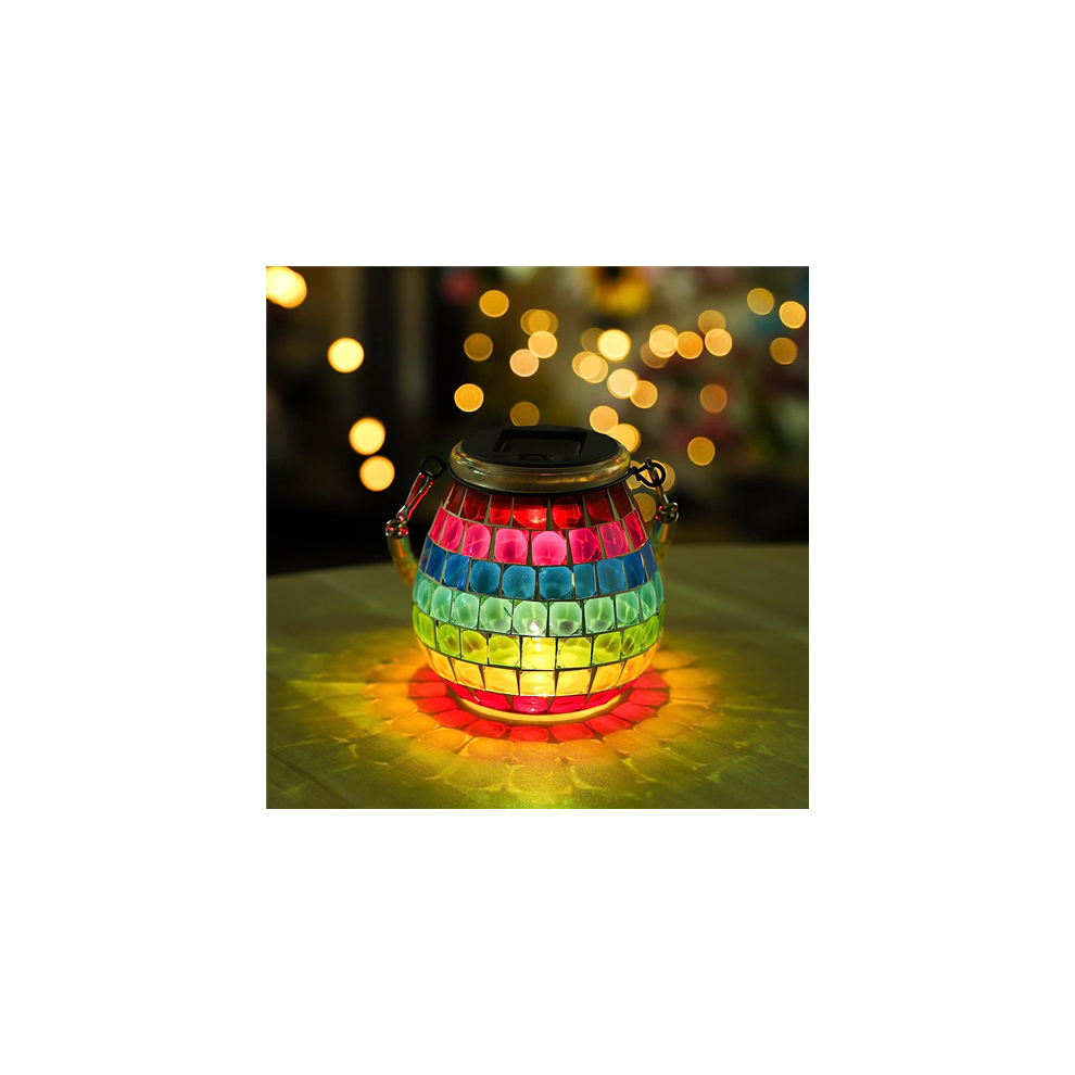 Solar Mason Jar Lamp丨Mosaic Hanging Pendant Light Solar Panel