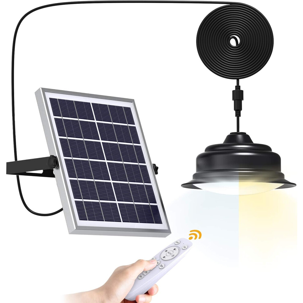 Solar Pendant Light with Remote Control, 1000LM Waterproof Outdoor Indoor Hanging Lamp for Shed, Barn, Patio, Garden (Single Lamp)