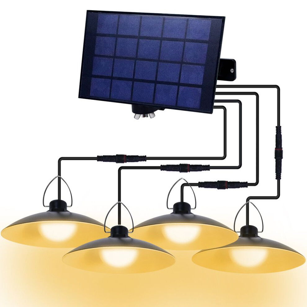 (4 Heads, Warm White) Solar LED Pendant Light Panel IP65 Garden Yard Shed Hanging Lamp