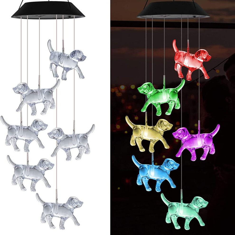 Solar Puppy Pendant Wind Chime Light with 6 Colorful LEDs, Waterproof Hanging Garden Decor for Patio and Yard