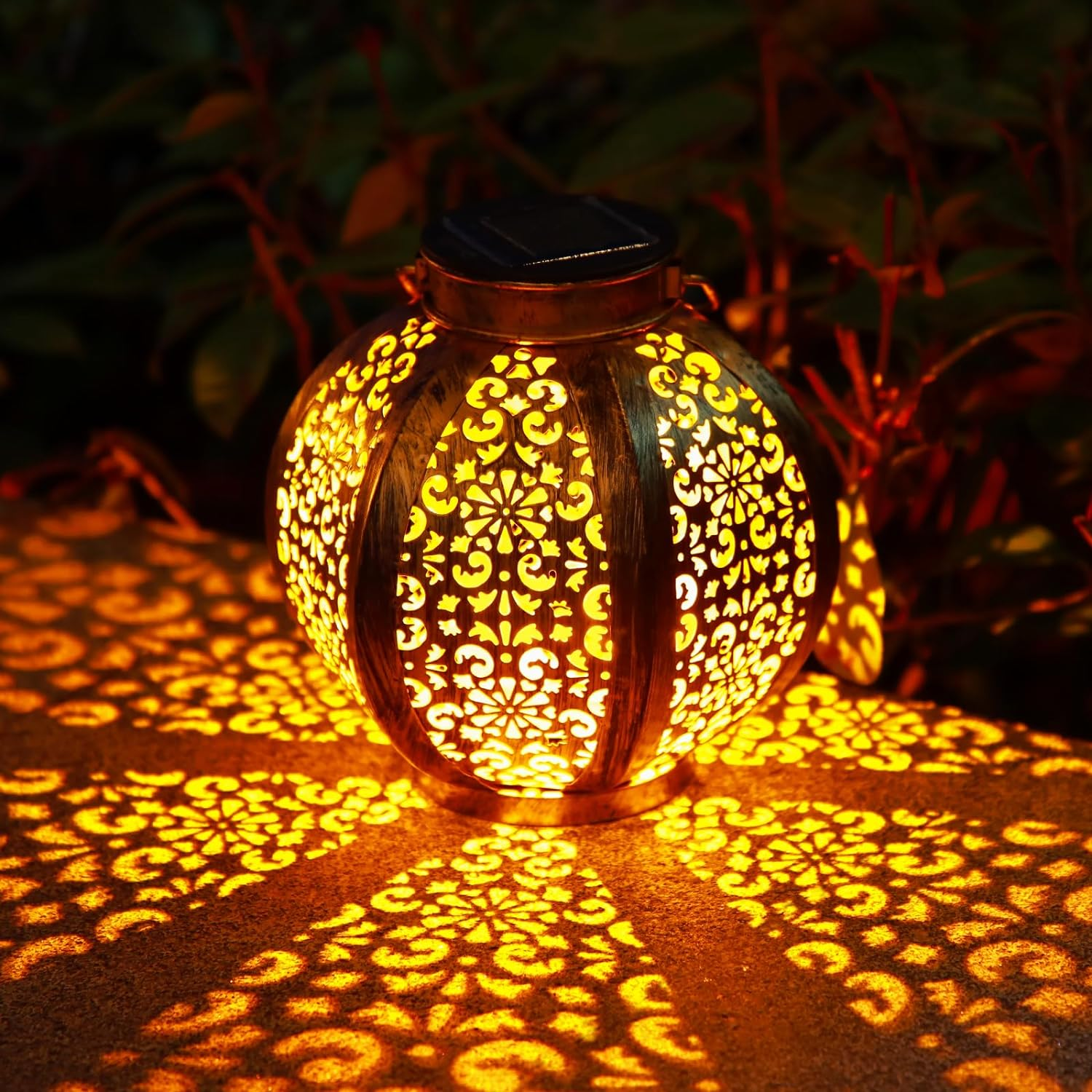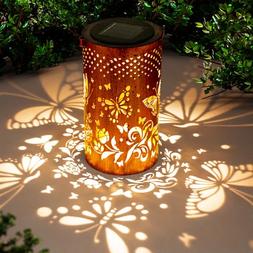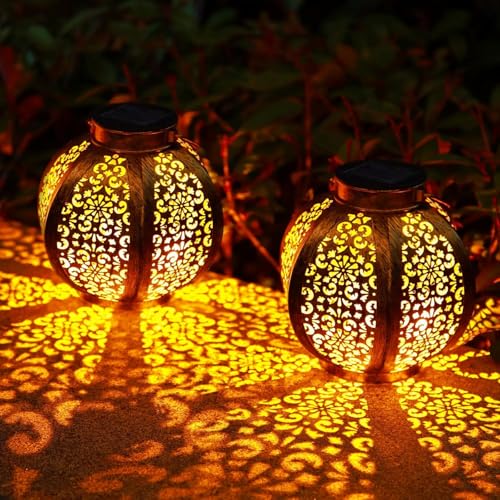 Solar Lanterns Outdoor Garden, 2 Pack Metal Solar Powered Waterproof LED Lights - Decorative Light Garden Ornaments for Patio Yard, Gifts for Women Mum Grandma